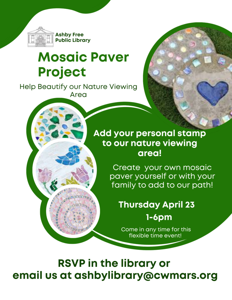 The Friends of the Ashby Free Public Library support many of the programs and services we offer at the library for people of all ages. They support music performances, art programs, cooking clubs, the AshbyFest and much more. Support them by shopping at our online gift shop, or consider becoming a member of the Friends. If you prefer to order in person you may do so at the library or by emailing the friends below.