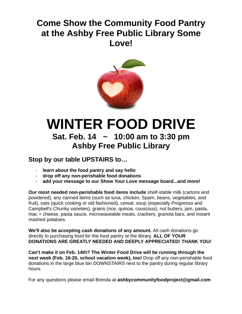 The Friends of the Ashby Free Public Library support many of the programs and services we offer at the library for people of all ages. They support music performances, art programs, cooking clubs, the AshbyFest and much more. Support them by shopping at our online gift shop, or consider becoming a member of the Friends. If you prefer to order in person you may do so at the library or by emailing the friends below.